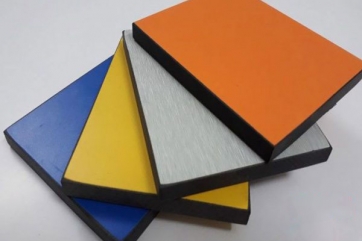 Bên ngoài phủ một lớp giấy màu thẩm mỹ đã ngâm qua nhựa Melamine hoặc Laminate có nhiều màu sắc khác nhau. Tấm Compact HPL loại I này dày 15mm.